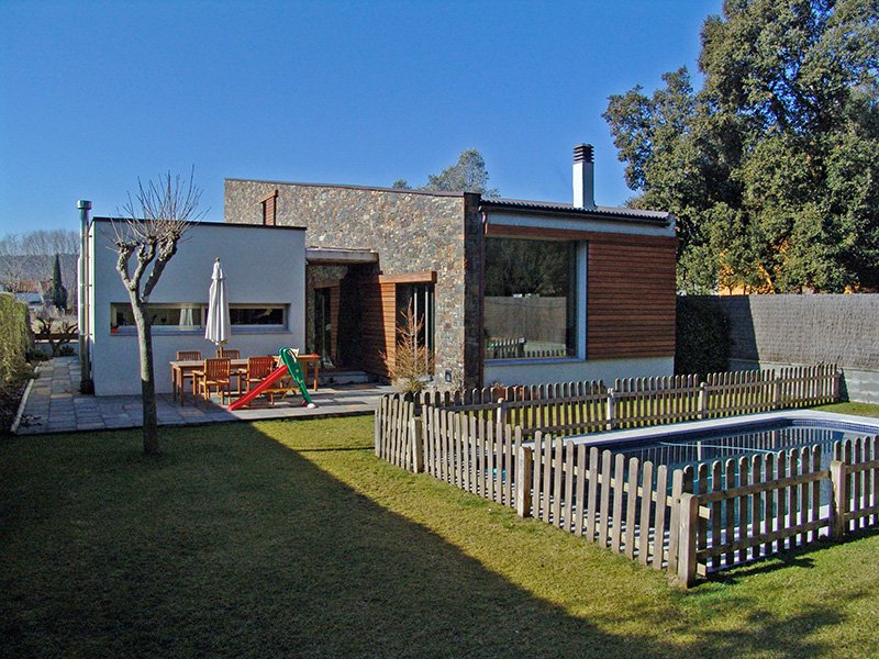 La distribució interior es resol de manera clara, separant les zones de dia i de nit, i potenciant la relació entre els espais comuns i l’exterior. Les obertures es col·loquen estratègicament per emmarcar vistes, controlar la radiació solar i garantir una bona ventilació natural, contribuint així a una casa confortable i eficient.